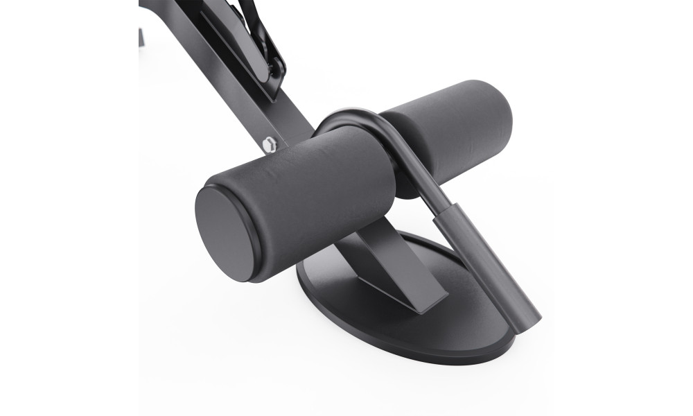 Скамья спортивная имеет регулируемую спинку, которая фиксируется в 8 различных положениях, позволяя вам подбирать нужный угол наклона. Это дает возможность выполнять как жим лежа, так и обратный жим, адаптируя скамью под ваши индивидуальные нужды. Сиденье имеет 3 уровня регулировки, что обеспечивает оптимальный комфорт и поддержку для каждого пользователя. Валики для ног из мягкого материала помогают зафиксировать ноги и избежать скольжения во время выполнения упражнений.