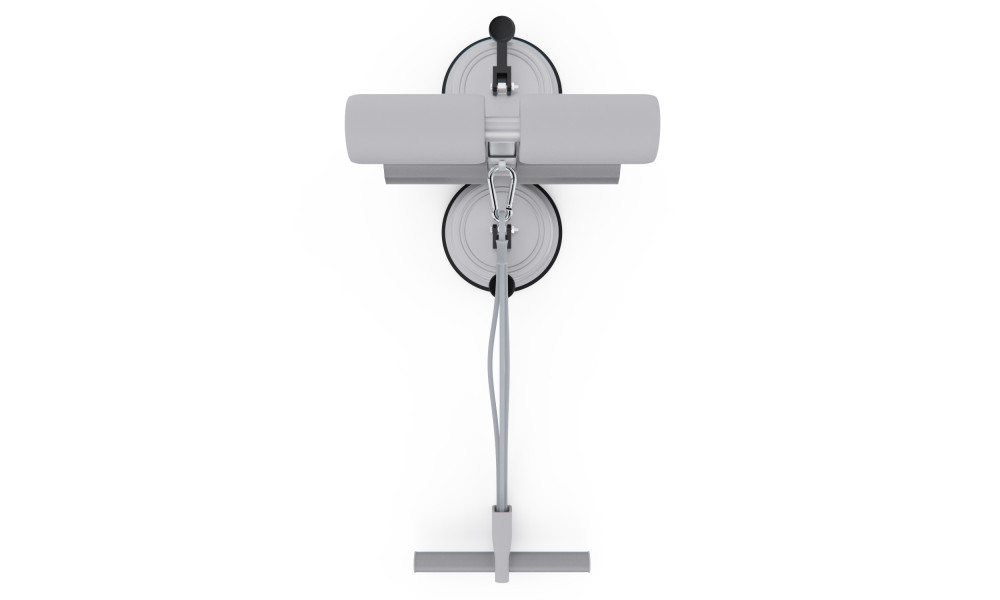 Тренажёр оснащён двумя мощными присосками диаметром 108 мм, которые обеспечивают прочное сцепление с полом и исключают скольжение во время упражнений. Длина рукоятки — 23 х 3 см, а мягкие валики диаметром 10,5 х 5 см плотно фиксируют стопы, делая тренировки безопасными и комфортными.